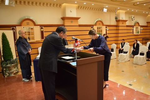 表彰式では、会長から出席された受賞者一人ひとりに表彰状と記念品が手渡されました。 |